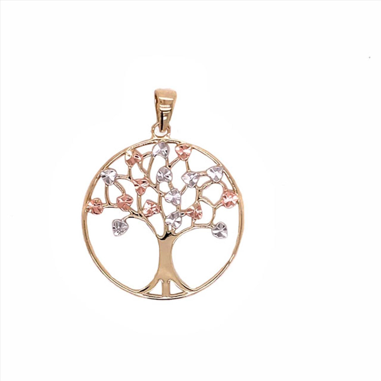 9k Three Tone Tree of Life Pendant with Diamond Cut Leaves 25mm - PN127A | PN127A