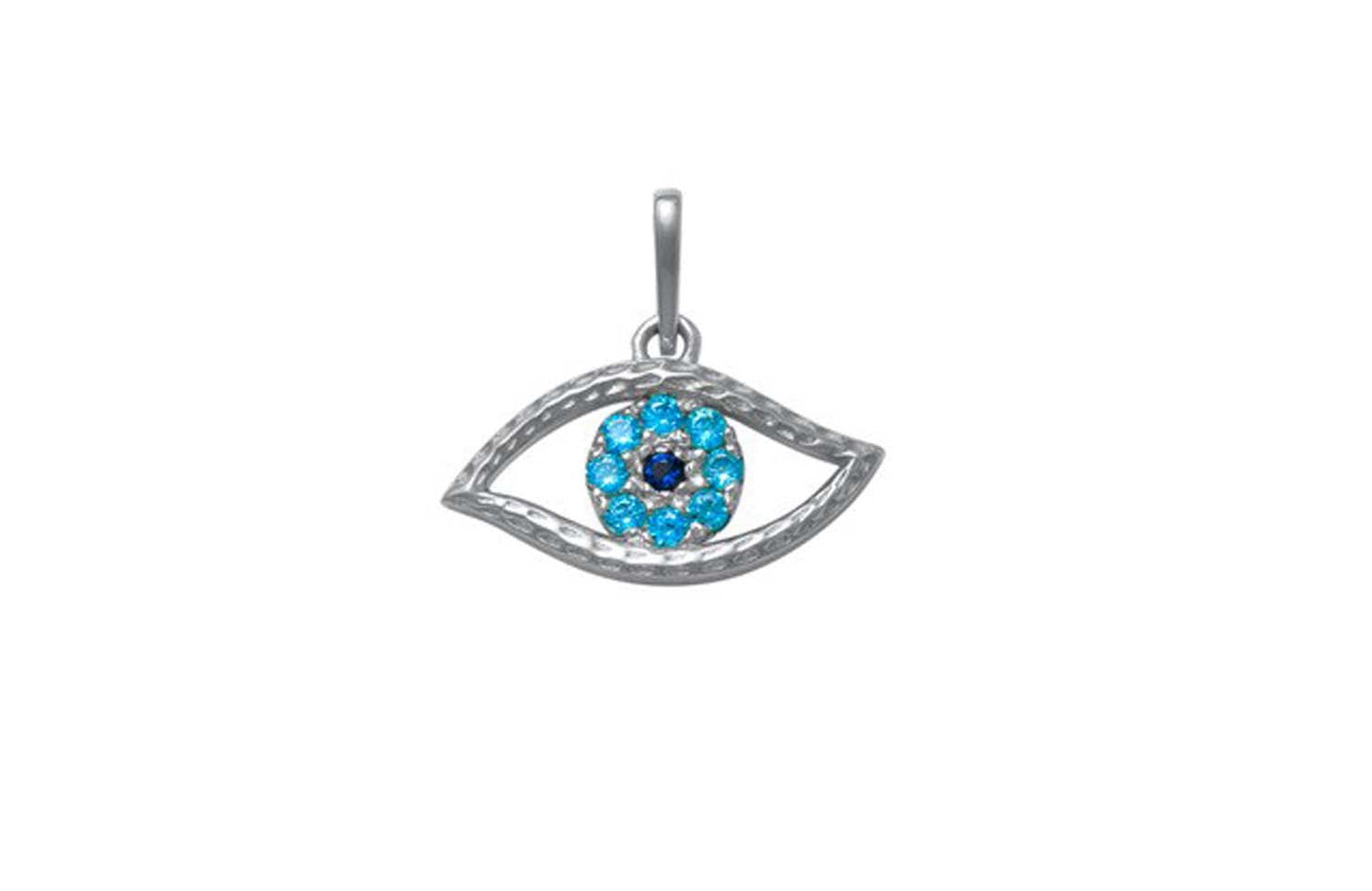 9k White Gold Solid CZ Greek Eye Pendant set with Blue CZ's in centre 15mm x 7mm