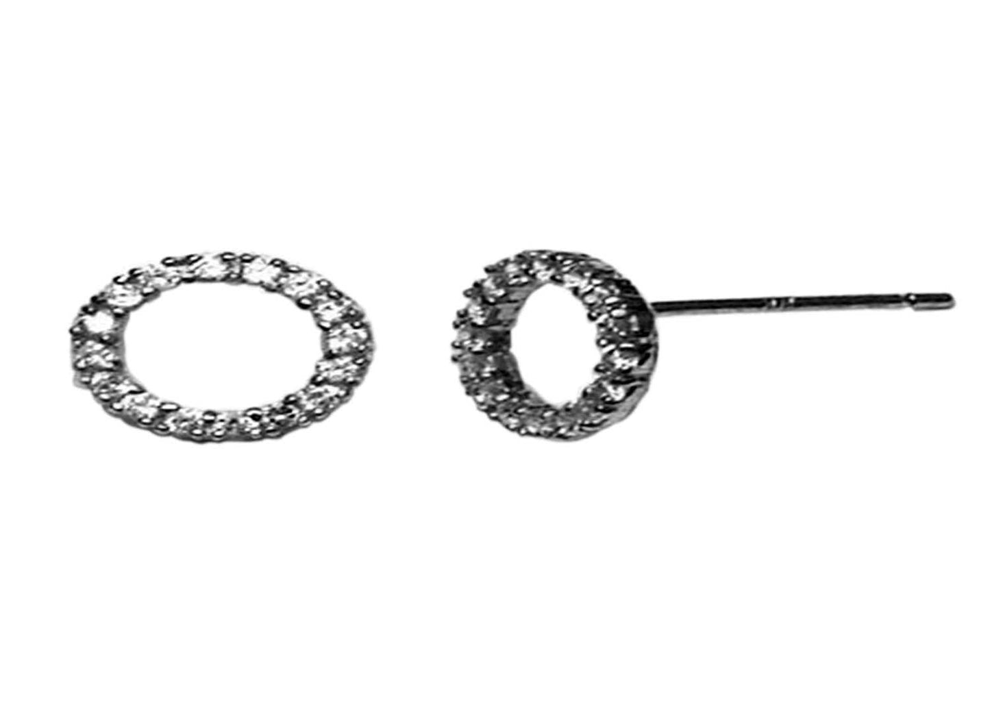9k White Gold CZ Outline Circle Stud Earrings 7.5mm - ES111 | ES211