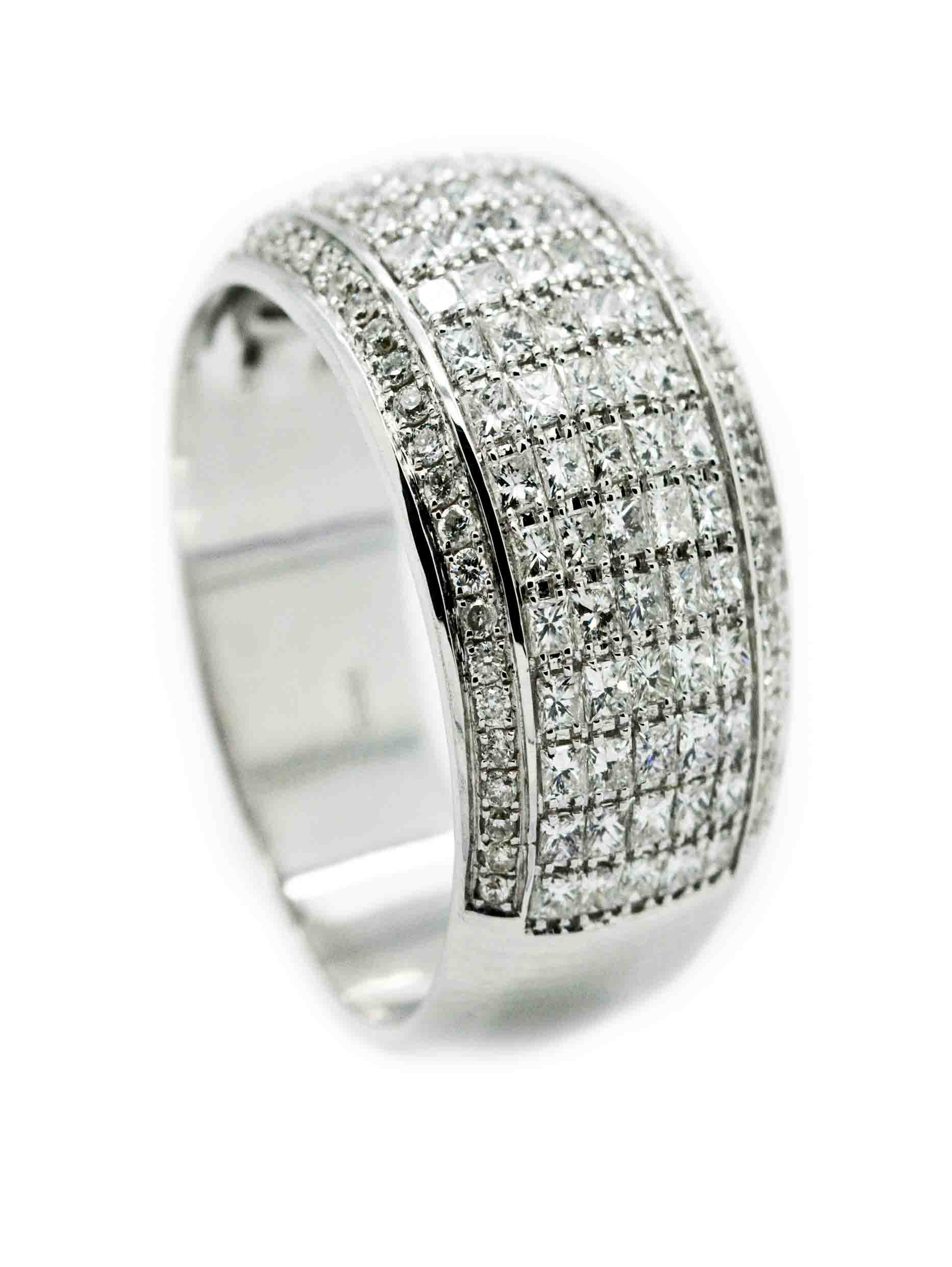 9k White Gold Diamond Ring. 11mm Wide. Set with 46D=0.20ct & 75PR=1.40ct - DR455 | DR455
