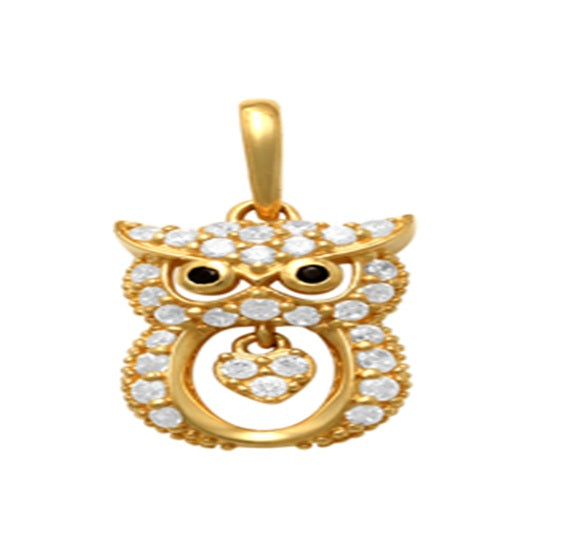9k Yellow Gold Owl Pendant set with Black & Clear CZ's 11mm x 8mm - PN475 | PN475