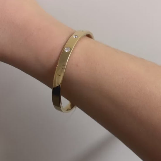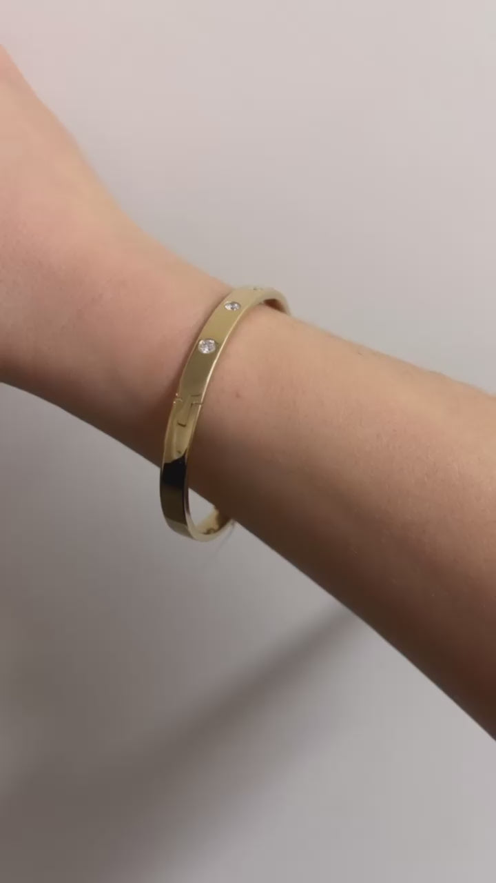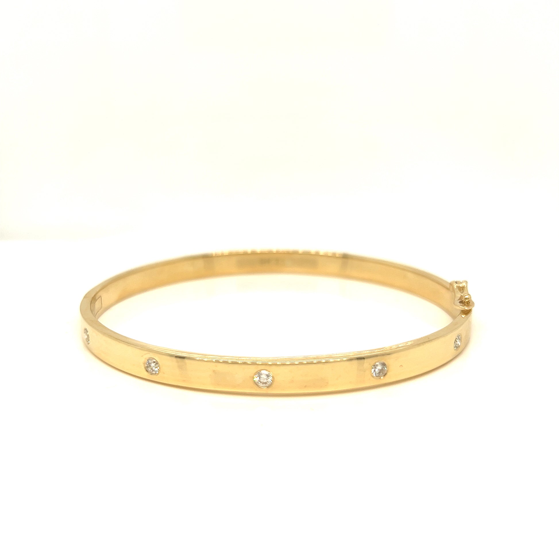 9k Yellow Gold Diamond Oval Hinged Bangle 5mm Wide. 7D=0.70ct G/SI. Available in various sizes - BFOH5 | BFOH7