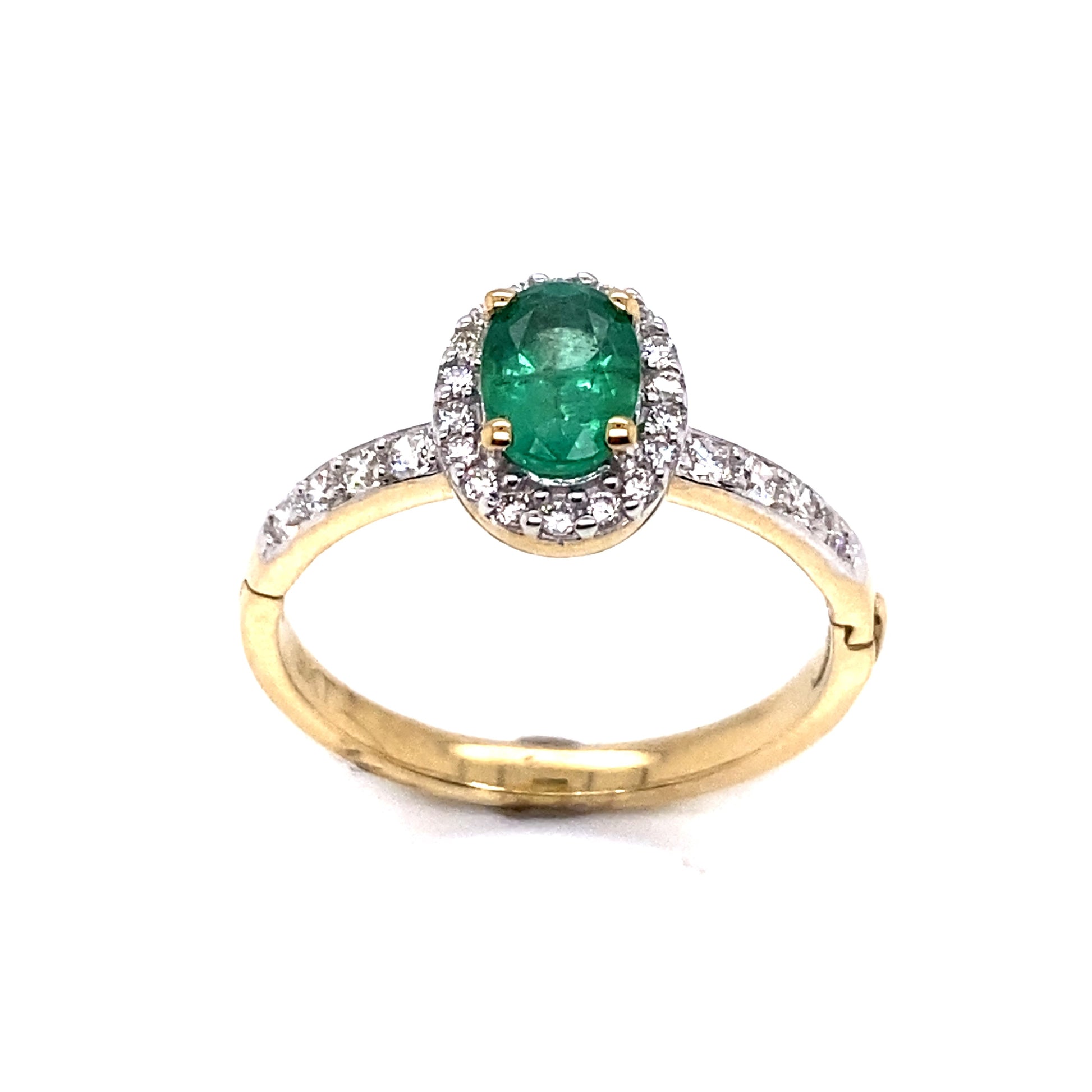 9k Yellow Gold Created Emerald & Diamond dress Ring with White Gold Setting 1Em=0.75ct & 28D=0.30ct. Available in various sizes. - DR146 | DR146