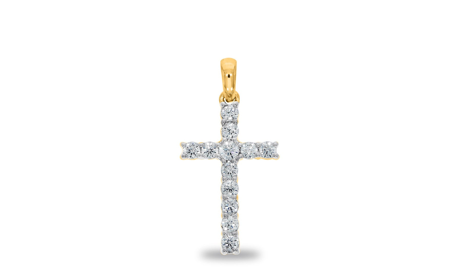 9k Yellow Gold Diamond Claw Set Cross 12D = 0.27ct. Meas 15x10mm. DP695