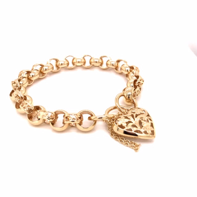 9k Yellow Gold Solid Round Belcher Bracelet 9mm wide. With Safety-Chain and Filigree Padlock. Available in various sizes and styles - BELY150L | BELY150L